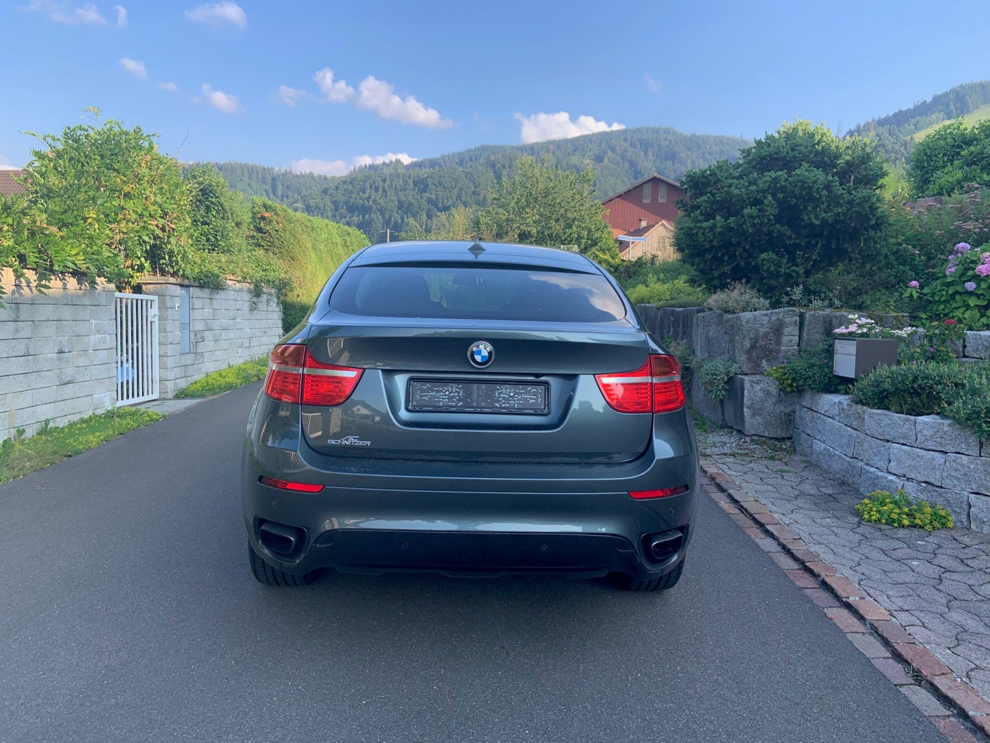 Aus Platzgründen verkaufen wir unseren BMW X6, eleganter Dampfhammer mit Vollausstattung, servicegepflegt und mit allen Extras inkl. Rückfahrkamera. Der Wagen hat optische Ausstattungselemente AC Schnitzer, wie Lenkrad, Typenbezeichnung usw. Coole Felgen Power Tech von BMW. Super Bi-Turbo-Sound und irre Beschleunigungn. Ab Platz und ab Service.. Gegen geringen Aufpreis (350,– CHF) auch mit frischer MFK. Ihr Auto für den nächsten Urlaub und den nächsten Winter.