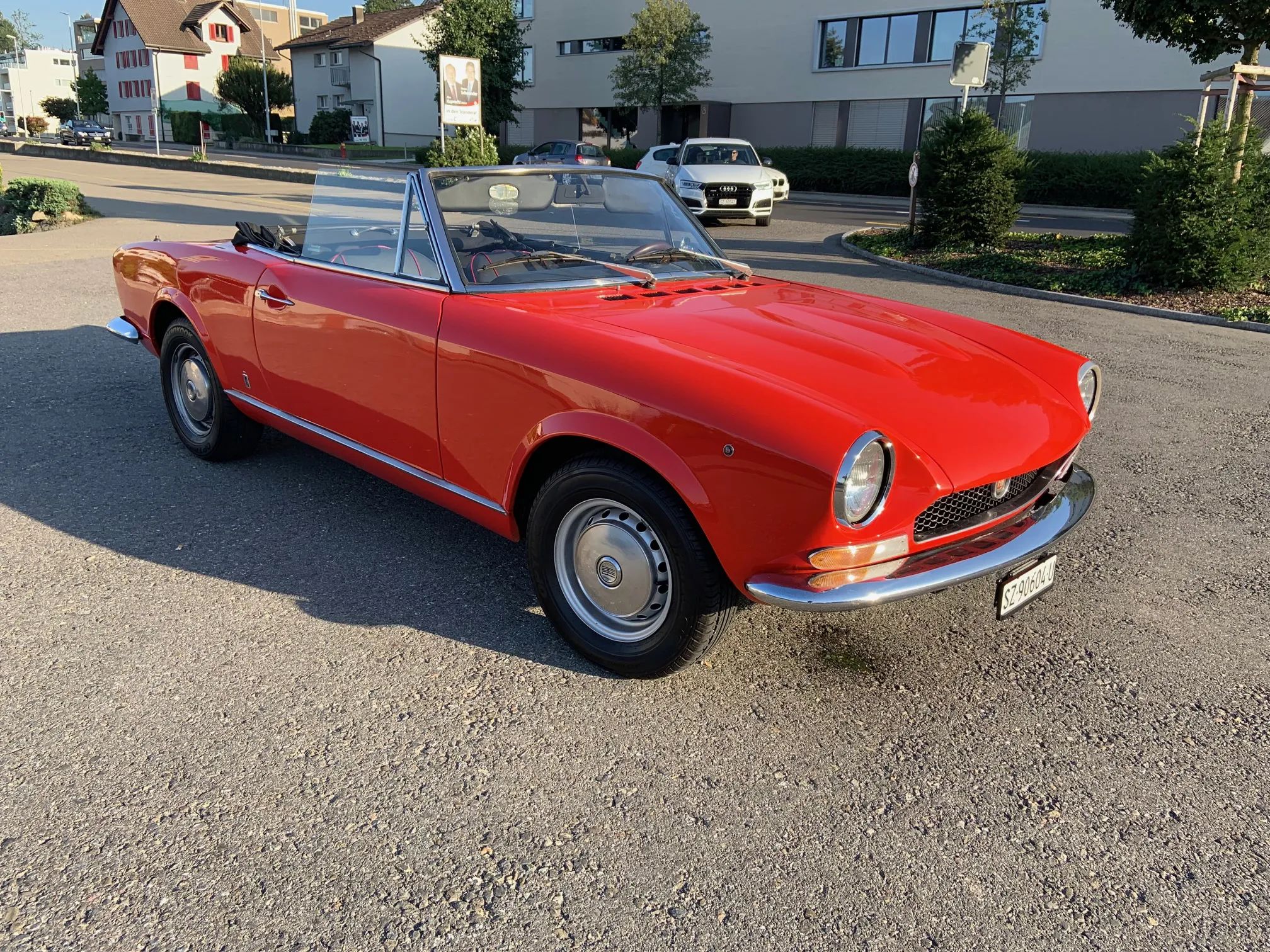 Wir trennen uns von unserem schönen Fiat 124 1600 Sport Spider mit 5-Gang Getriebe, Schweizer Erstauslieferung. Er schaltet sauber und zieht gut. Ein wirklich schönes und in dieser Qualität seltenes Stück Zeitgeschichte. Der gepflegte und unverbastelte Spider wurde 2017 restauriert und verfügt über zahlreiche Neuteile, wie Auspuffanlage, Verdeck etc. Einfach reinsitzen und losfahren – macht irre Spass.